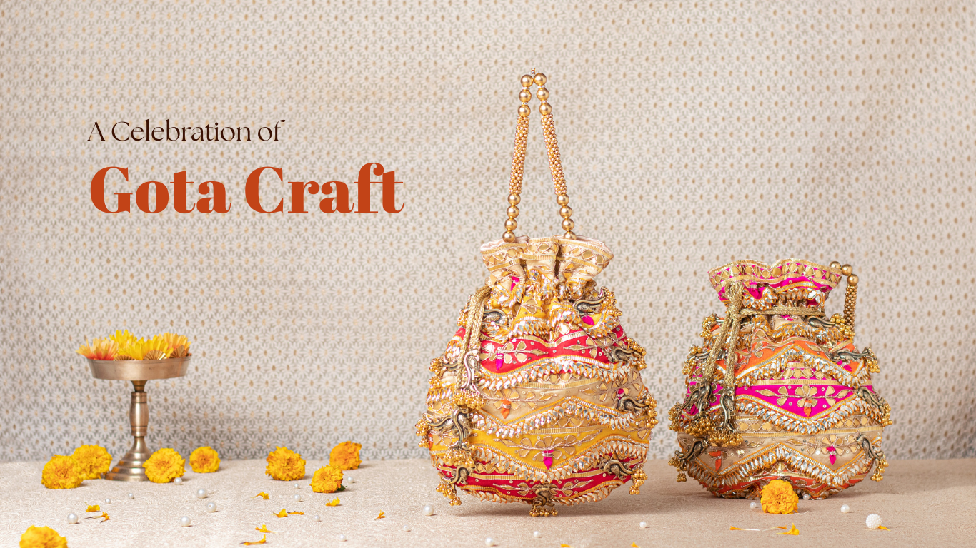 Designer Multicolor Gota Patti Potli Bag | Orange Pink Gold Festive Potli