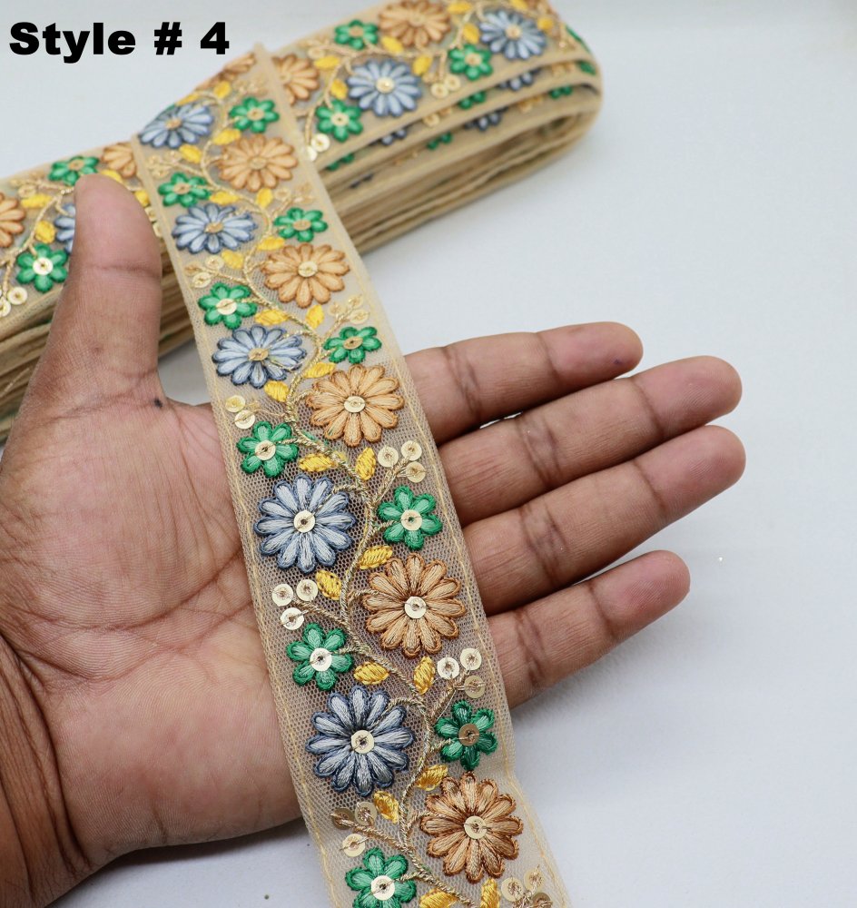 Floral Texture Embroider Trim Sewing Costume Cushion Gift Wrapping Ribbons Crafting Headbands DIY Embellishment Indian Lace Saree Border