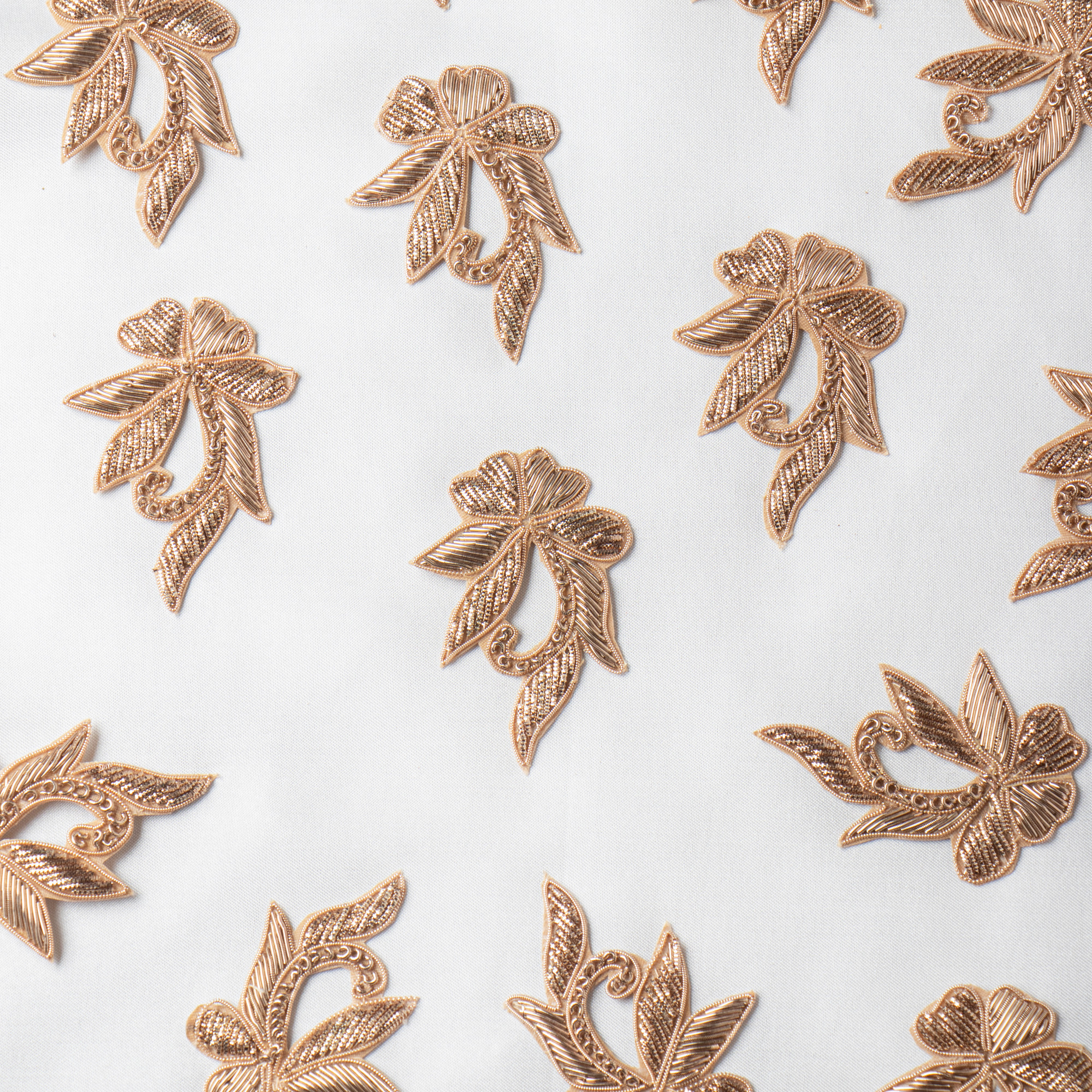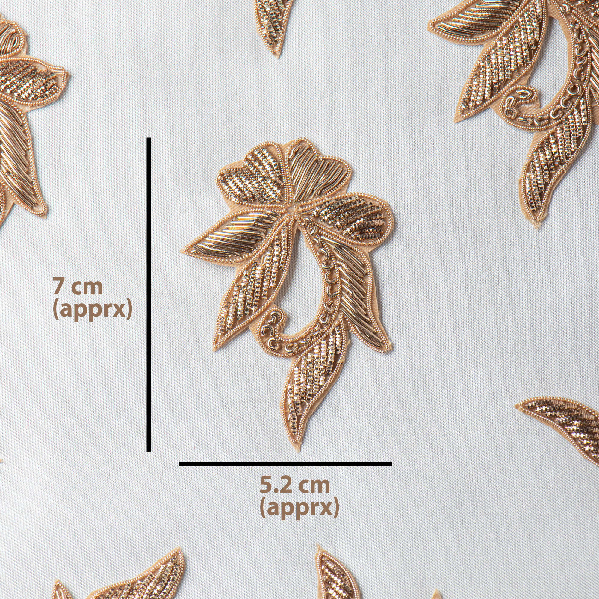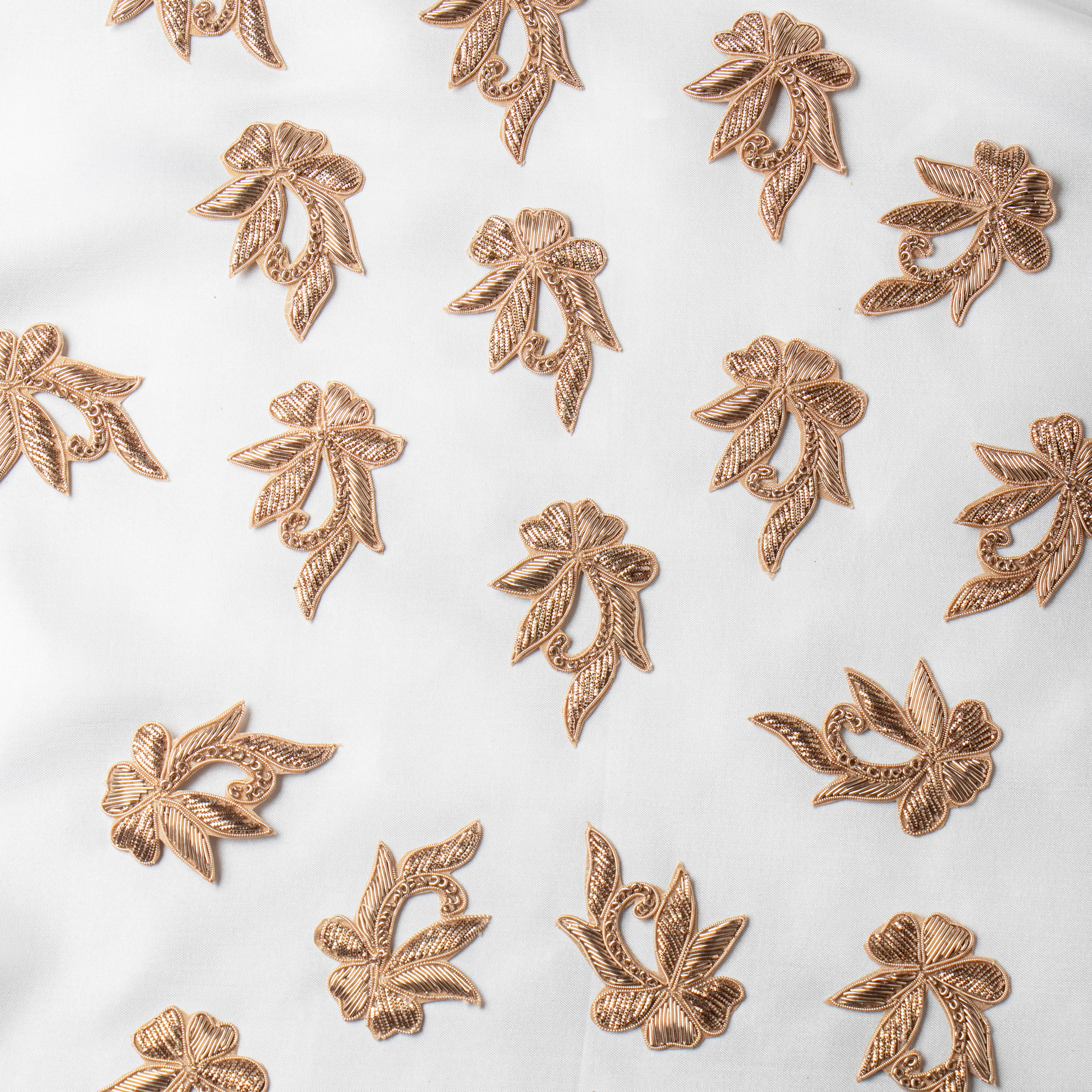 Bring a touch of royal elegance to your designer creations with this premium 10-piece set of handcrafted Zardozi appliques. Made using traditional Indian embroidery techniques, each patch is beautifully handworked with rich gold Zardozi thread, giving it a luxurious and timeless appeal. These classic Zardozi patches are perfect for elevating the look of bridal blouses, lehengas, sarees, festive outfits, dupattas, gowns, potli bags, clutches, and handcrafted accessories. Their elegant shape and fine detailing make them ideal for both subtle styling and bold couture embellishments. Every piece is crafted with care by skilled artisans to ensure durability, premium finish, and perfect symmetry. The strong backing allows easy stitching or fabric-glue application, making it suitable for fashion designers, boutique owners, craftsmen, and DIY creators. Whether you're designing wedding outfits, customizing handbags, or upgrading your boutique collection, this Zardozi patch set adds a luxurious ethnic charm and premium handcrafted finish to every project.