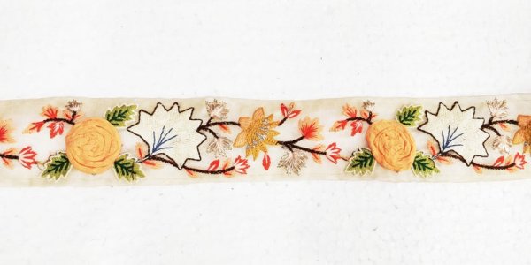 Beige Organza Fabric Hand Embroidered Floral Trim For Sewing || Crafting Ribbons || Decorative Trims