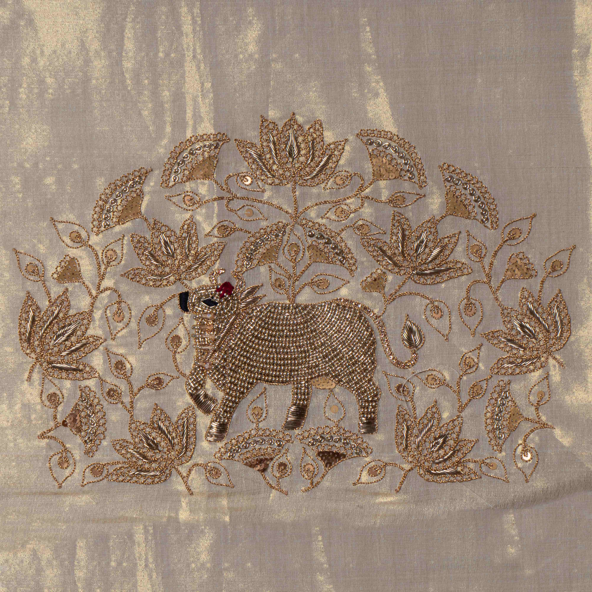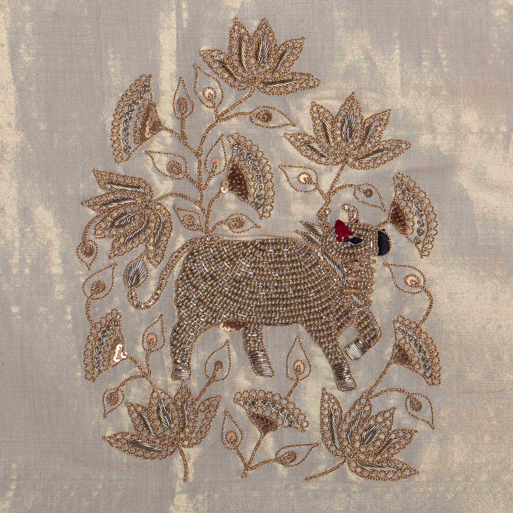 Ethnic Wedding Cow Pichwai Dori Marodi Embroidered Gold Blouse Fabric
