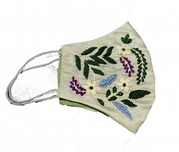 Exclusive floral texture thread embroider artisian handmade face mask covering | pista green silk face mask | embellishment face covering