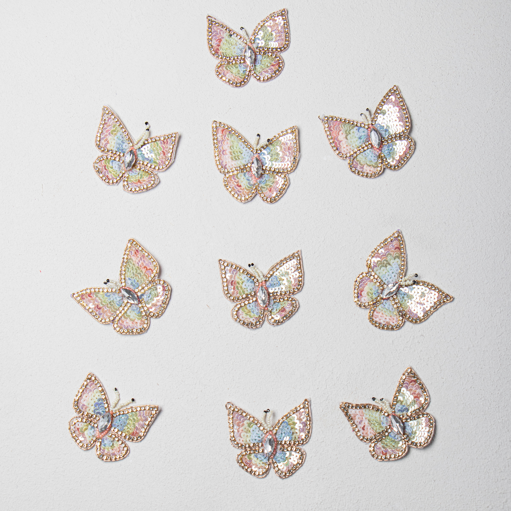 Enhance your creative projects with this beautiful handcrafted multicolor butterfly patch, embellished using high-quality sequins, beads, rhinestones and premium threadwork. The patch features a stunning pastel multicolor shade with a sparkling stone centerpiece, giving it a luxurious and elegant appearance. Perfect for DIY fashion designing, this applique can be easily stitched or glued on fabrics, accessories, and craft items. This 6.6 cm x 6.1 cm embroidered butterfly applique adds an eye-catching decorative accent to lehengas, kids dresses, frocks, handbags, footwear, denim jackets, saree borders, home décor crafts, scrapbooks, hair accessories, and stage costumes. Ideal for fashion designers, boutique creators, craft lovers, and hobby artists looking to upgrade their handmade creations with a stylish, premium embellishment.