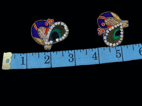 Pack Of 3pair Indian Multi Color Peacock Texture Design Sequin Embroidered Patch Applique Used in Different Designing in Multi Artifacts