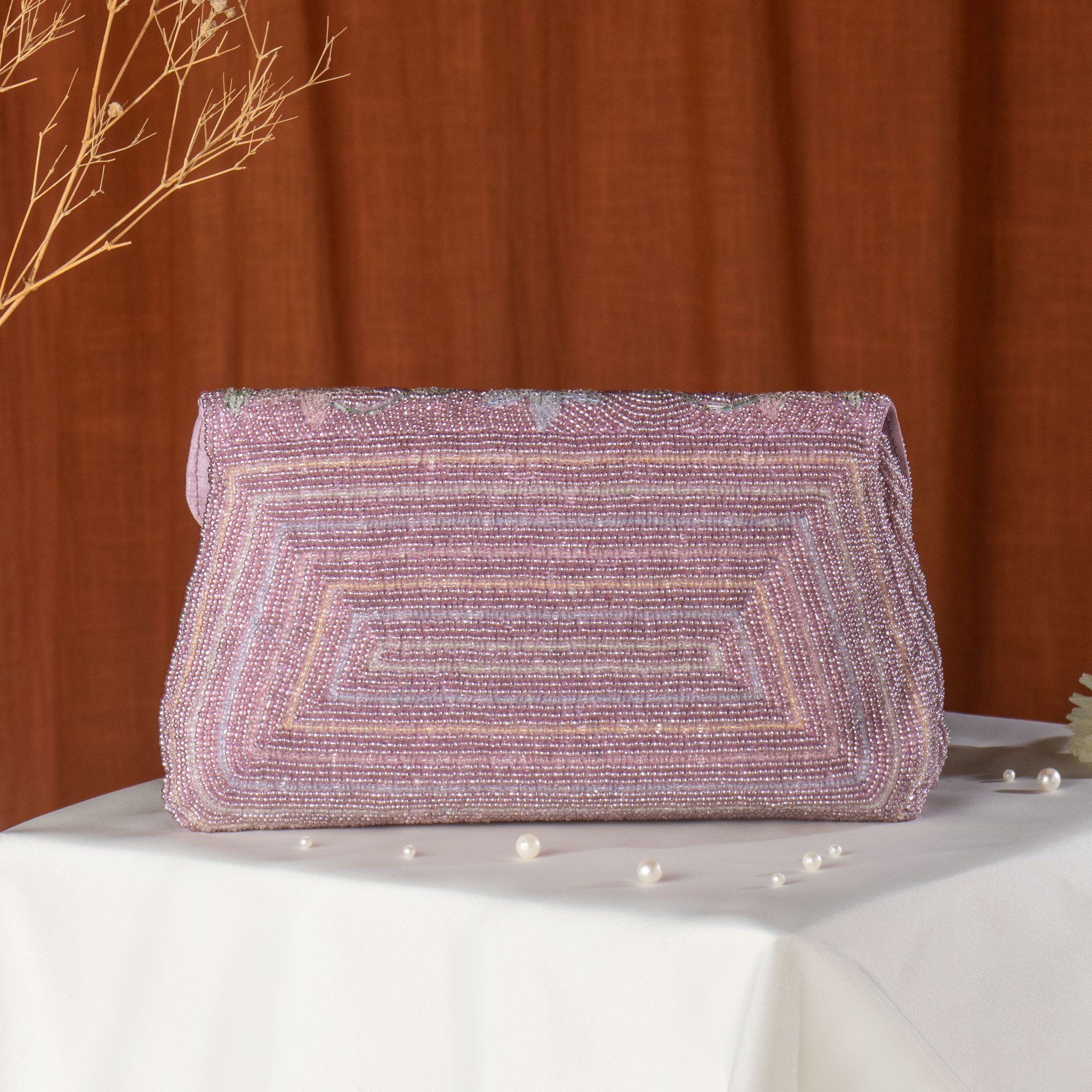 Add a pop of color to your ethnic wardrobe with this stunning Hand-Beaded Multi-Color Flap Clutch. Adorned with intricate beadwork in a variety of vibrant hues, this clutch is a true masterpiece of craftsmanship. Whether you're attending a mehendi, a wedding, or a festive dinner, this accessory ensures you stand out.