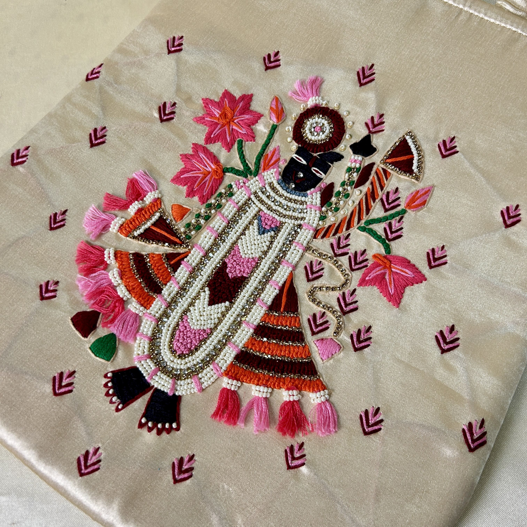 • Intricate fully hand-embroidered Shreenathji design on the front