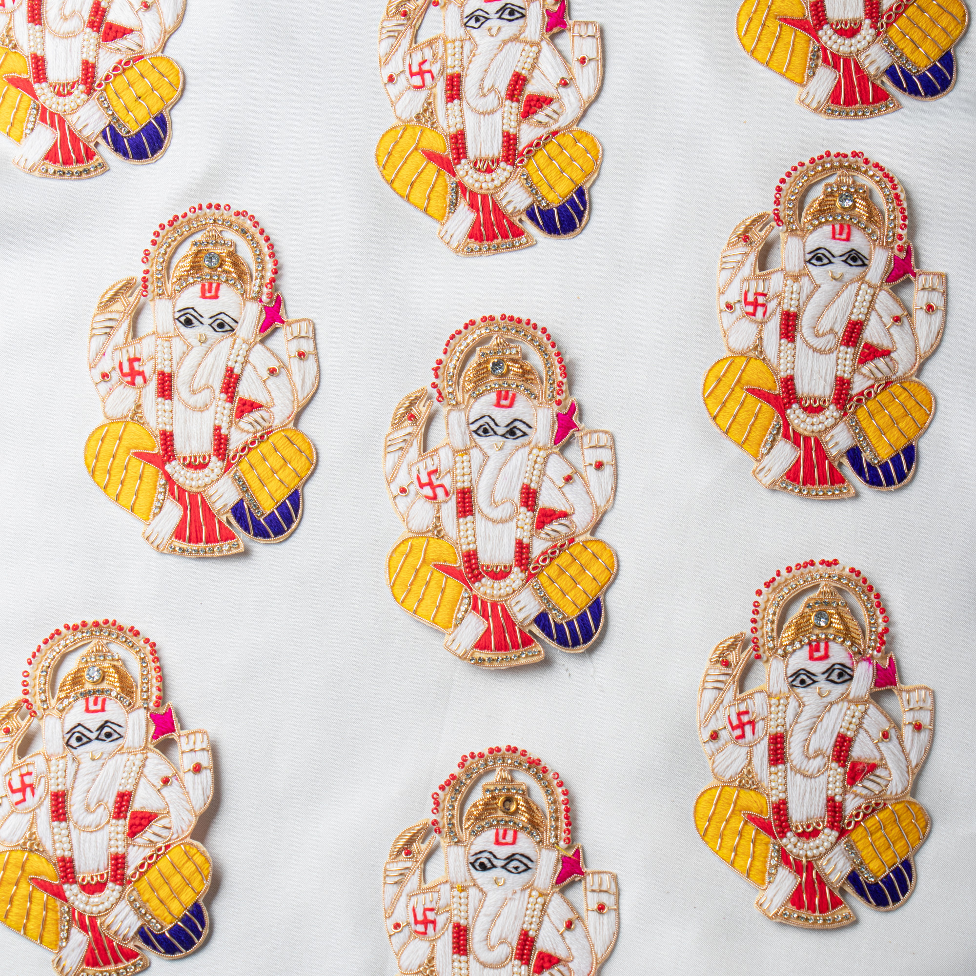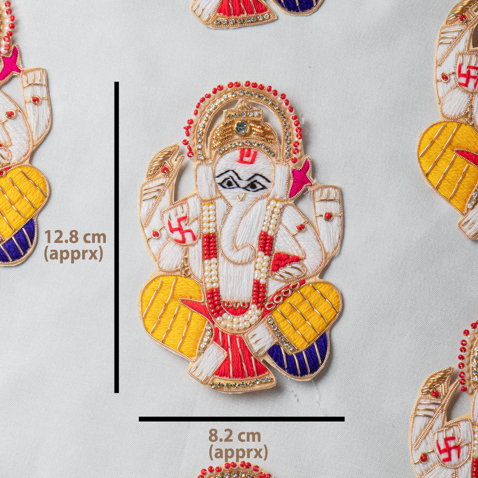 Bring divine elegance and traditional artistry to your creations with this beautifully handcrafted Ganesha Applique Patch. Designed with vibrant thread embroidery and premium bead embellishments, this motif showcases detailed craftsmanship and spiritual charm. The rich textures, layered colors, and fine finishing make this applique ideal for festive wear, traditional outfits, accessories, and home décor projects. Perfect for enhancing saree blouses, lehengas, kurta sets, handbags, wall decor, cushions, pooja decorations, and DIY craft projects.