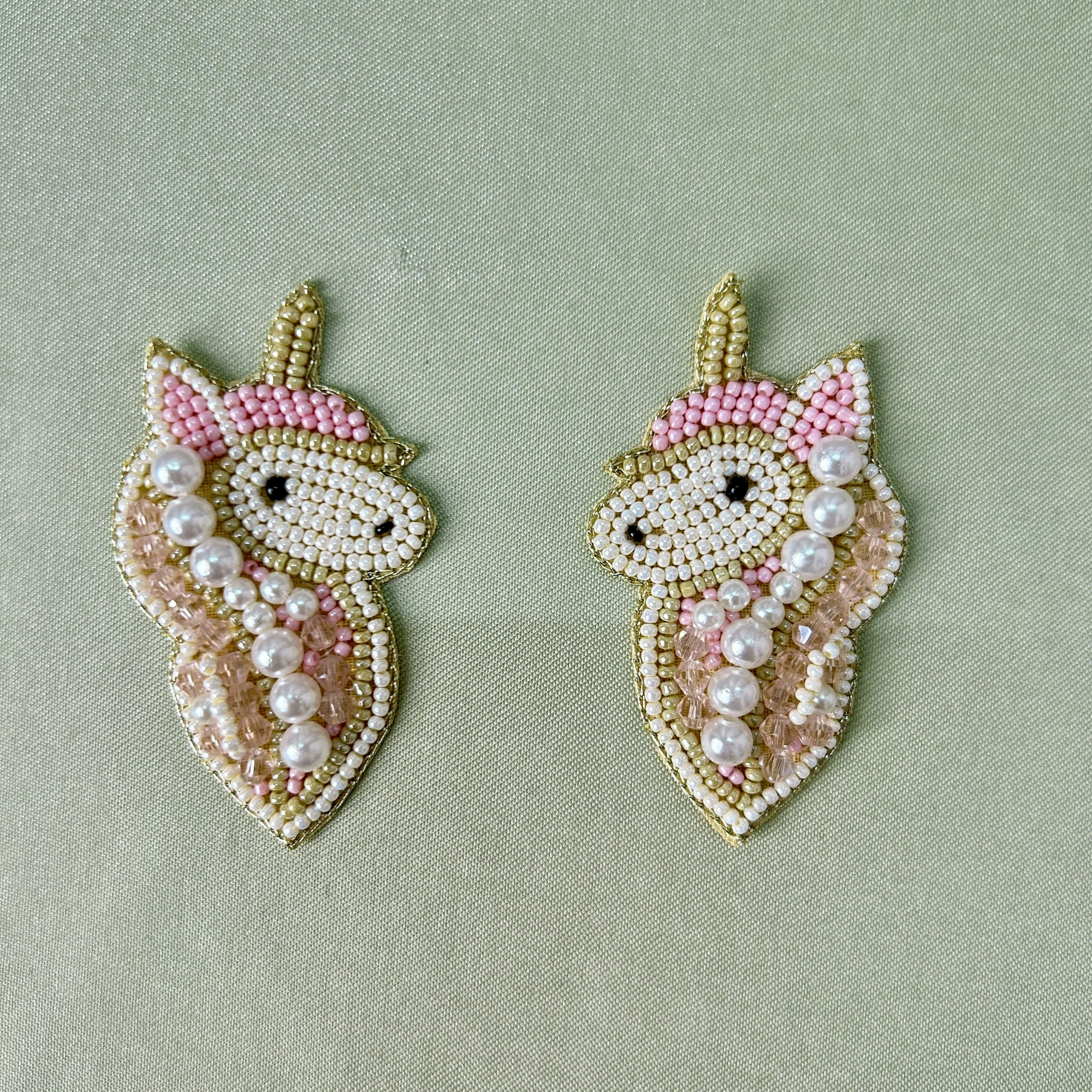 This unicorn beadwork patch is hand-embroidered with colourful beads, making it perfect for kidswear, accessories, and fun DIY projects.